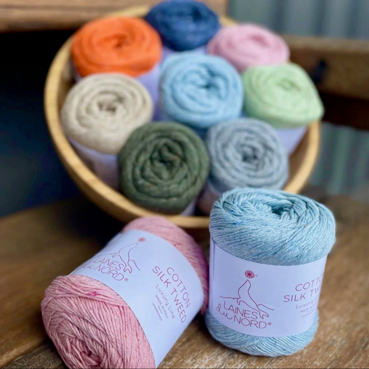 Keep cool with cotton, linen, silk yarns perfect for warm-weather projects.