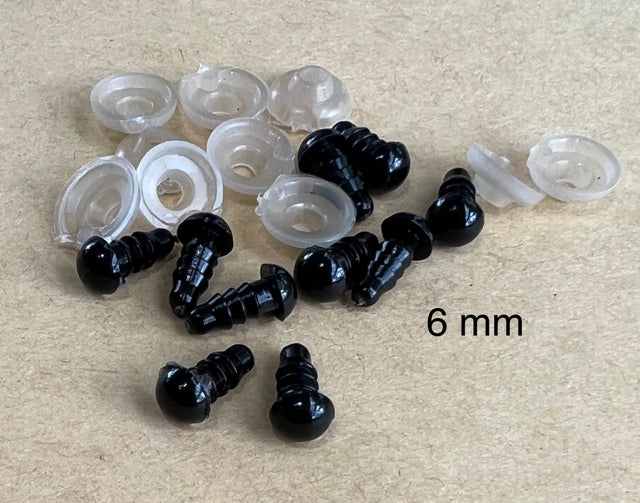 5 sets of 5 sets black plastic safety eyes with plastic backs. Perfect for amigurumi and toy making.