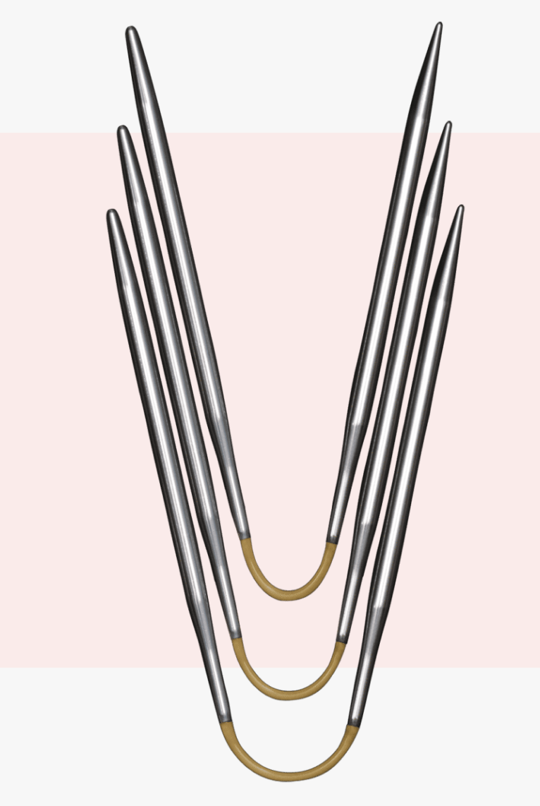 You can knit even the smallest diameters with this 3 piece set of flexible double pointed knitting needles. The stitches are distributed across two needles before being knitted with a third needle, resulting in only two needle changes per row. The needle adjusts to each hand thanks for the flexible middle section.