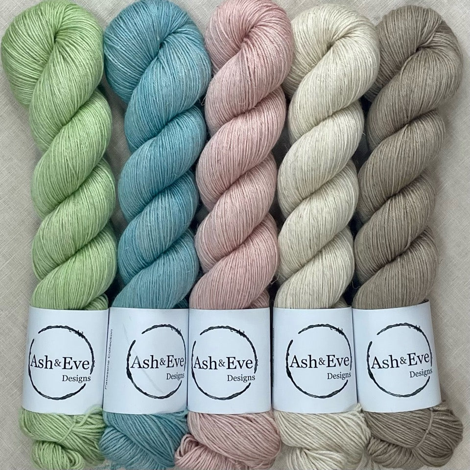 A carefully curated collection, this merino linen blend hand dyed yarn will add a touch of luxury to your summer projects.