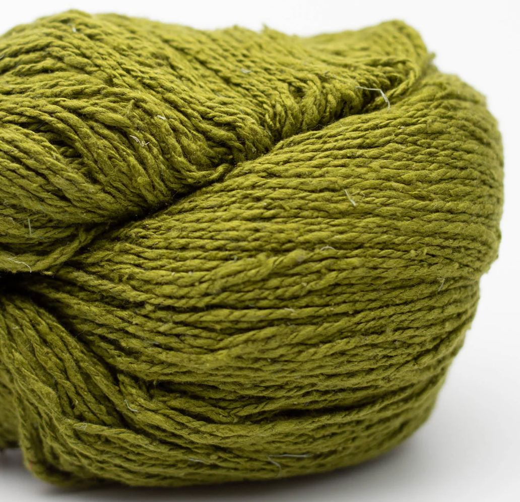 Soft Silk is spun and dyed by a small mill in India.