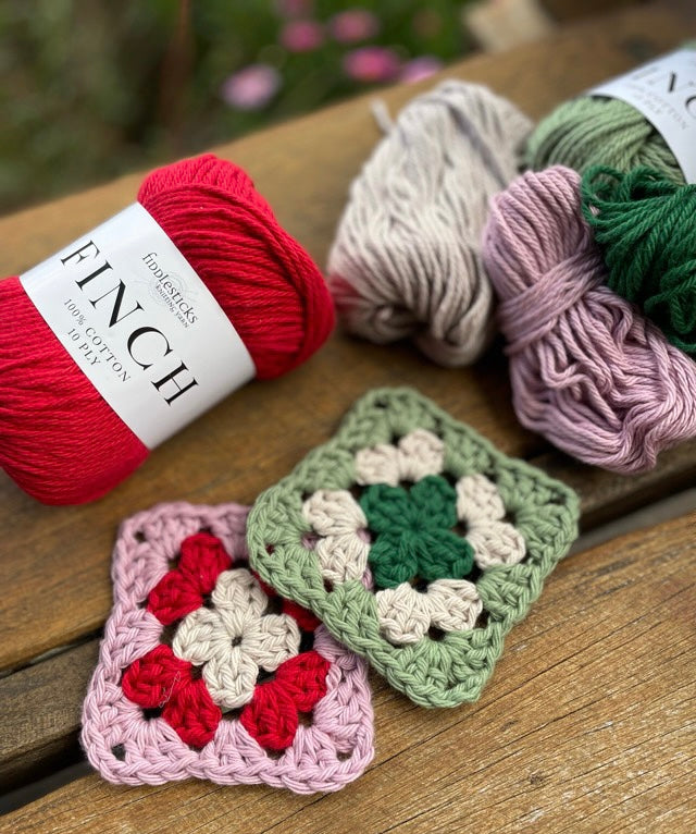 A 5.0 mm hook & a ball of Finch 10 ply 100% cotton and our store stash will be provided.