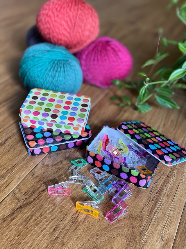 Pack of 25 crafters/quilters clips in a sweet decorative tin.