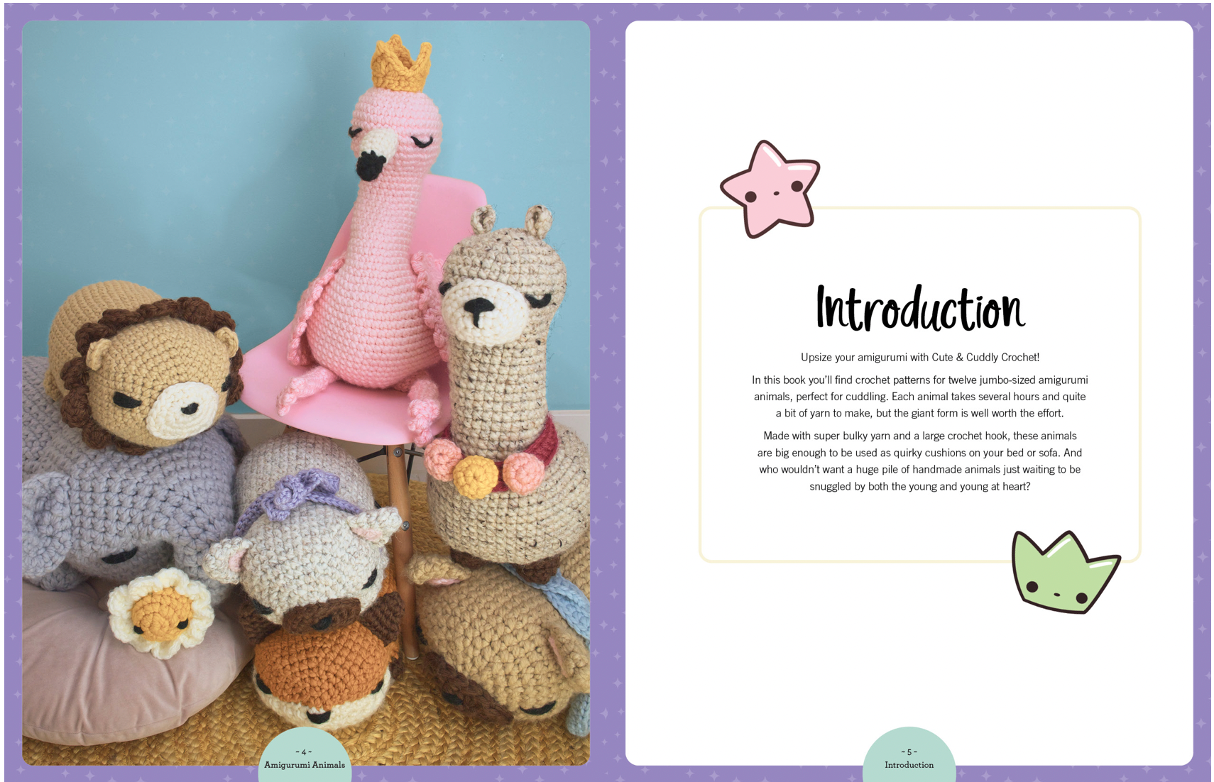 While amigurumi animals are often very small, this book features instructions and tips for crocheting larger plushie animals that are perfect for baby gifts, birthday gifts for kids, home decor, and more. While crocheting a larger animal may sound intimidating or like more work, it isn't! Included in the book are helpful hints for working with bulky yarn, as well as how to stuff the animals.