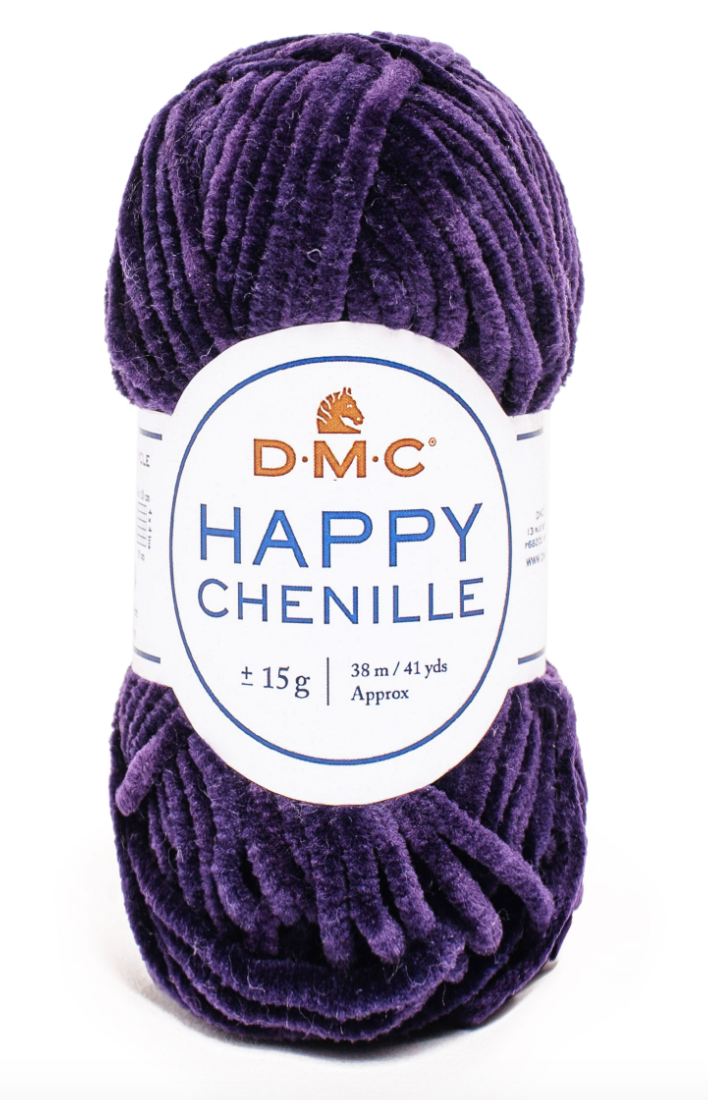 DMC Happy Chenille Yarn is a soft velvety yarn which is pleasant to work with. Specially designed to make little creatures, crocheted objects and Japanese style Amigurumis. For 3mm crochet hooks and knitting needles. Machine washable 100% polyester. Sold in in a box set of 25 balls.