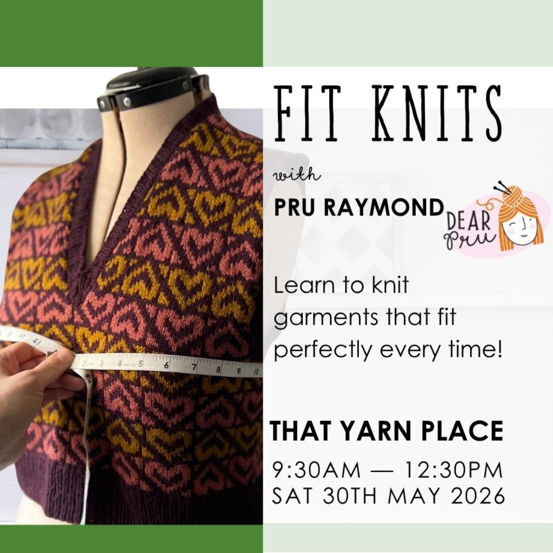 Join Pru Raymond (Dear Pru) at That Yarn Place in Samford for her three-hour Fit Knits workshop.