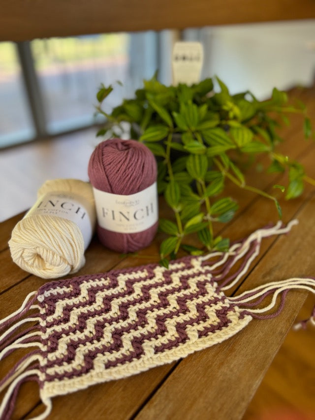 Materials included in this class - 2 balls of Fiddlesticks Finch 10 ply cotton.