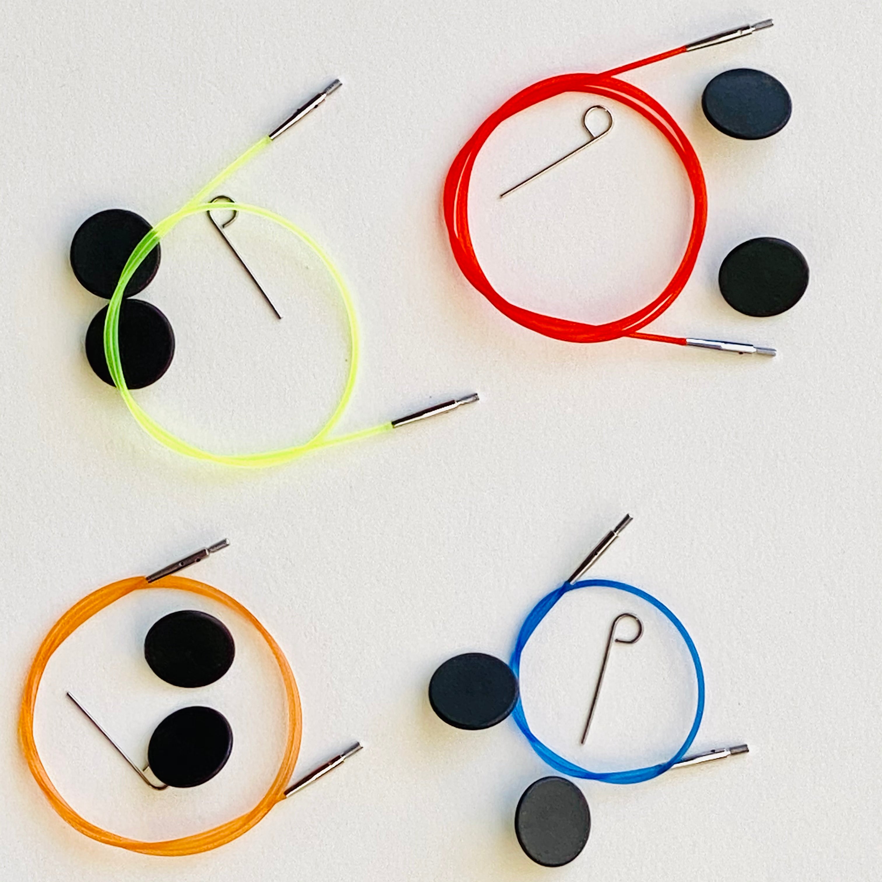 Cable suitable for Knit Pro connectible knitting needles. Comes with stoppers and key.