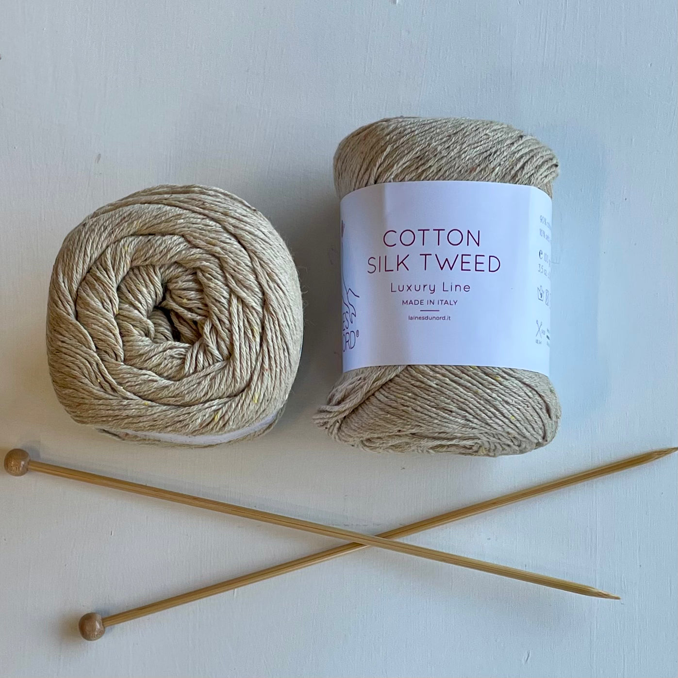 Silk and cotton fibres come together in a perfect yarn for knitting and crochet, the timeless tweed texture that is a must-have all year round. Ideal for multi-coloured, texture pattern, openwork, which come to life in classically elegant garments.