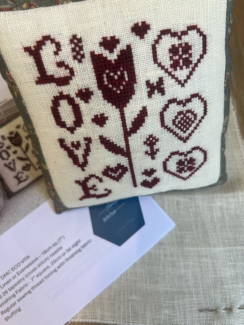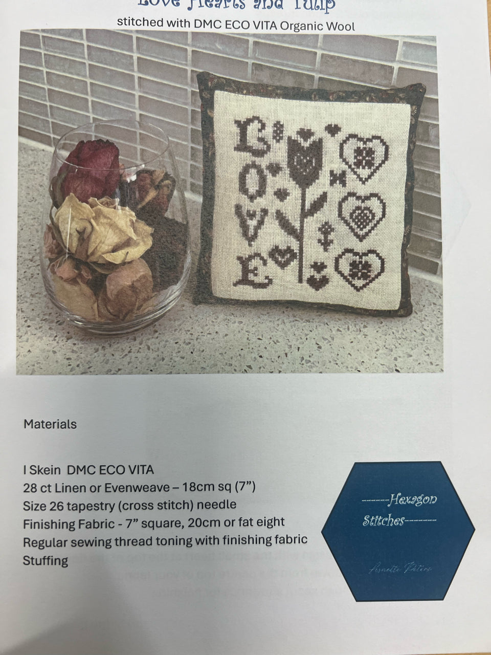 Kit includes pattern, 18 cm square 28 count linen fabric, size 26 tapestry needle and one skein of Eco Vita Organic thread of your choice.