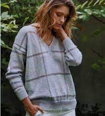 MARLOW 634 is a hand knitting pattern for a V-neck jumper with drop shoulder and grid pattern. Designed and written in Melbourne, Australia.