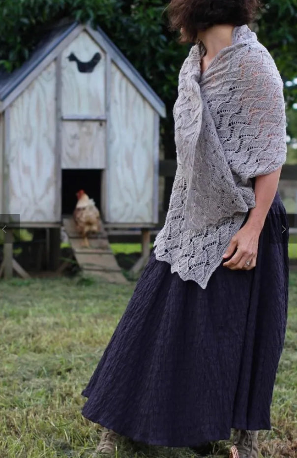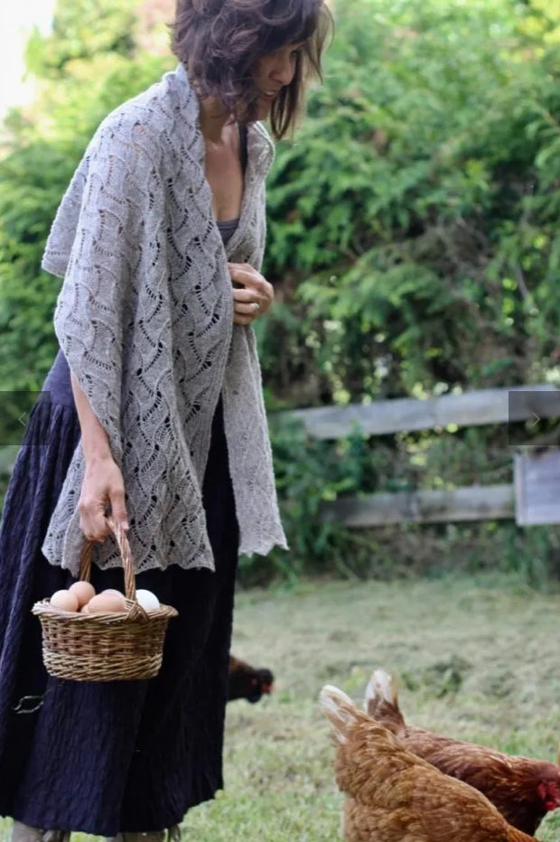 The combination of simple lines and lace that looks much trickier to knit than it actually is, makes my heart beat a little faster. Feathers is a truly tactile experience and draping it around your shoulders is like cloaking yourself in magic of the most elegant kind.