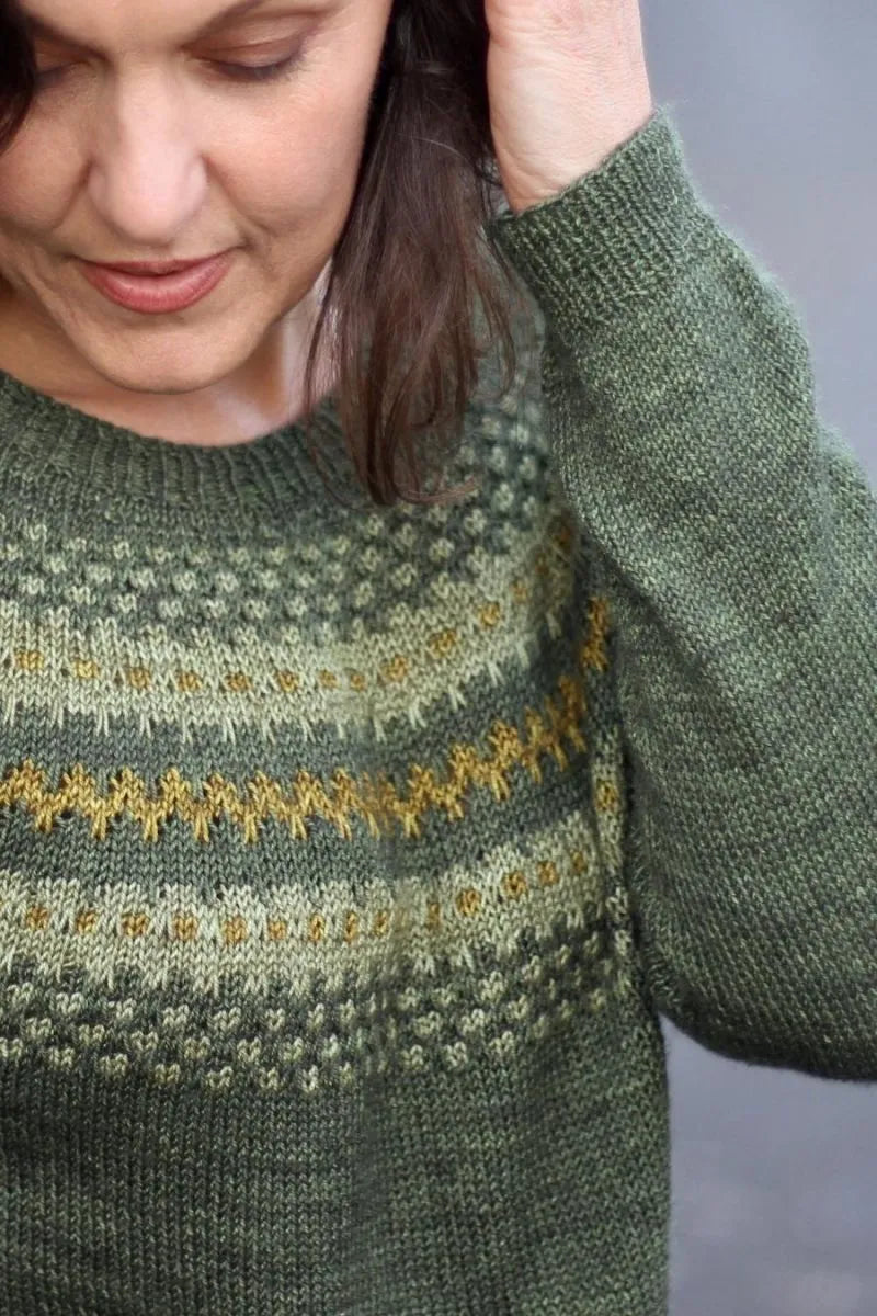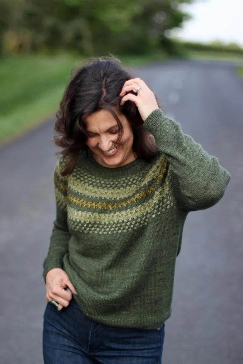 Knitted from the top down, so you can try her on as you go, Floozy Too uses slipped stitches to create her stunning colourful yoke.