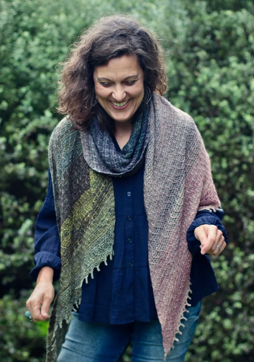 Weft (zig-zag section) 24 sts = 4”/10 cm and pattern repeat rows = 3.25”/8.25 cm, after blocking.
