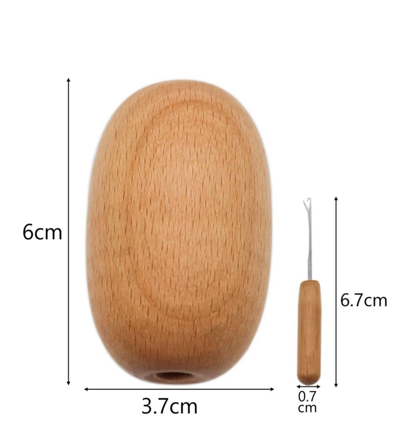 Egg is approx 6 cm x 3.7 cm and comes with a small darling tool that is stored in the base of the egg.